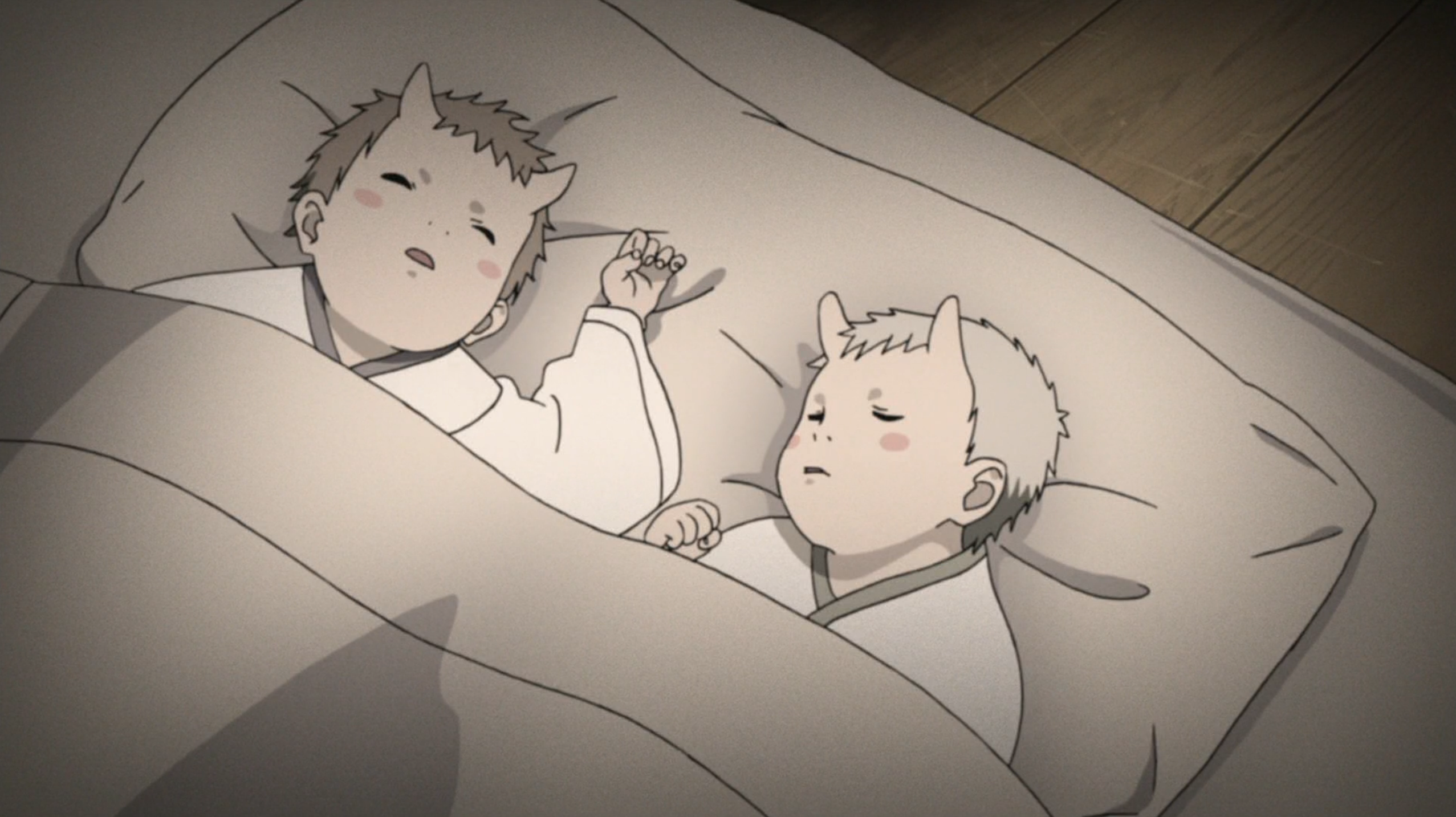 A normal human man, vaguely East Asian, and a woman even odder than her child. Her eyes are a smooth, unrelieved light purple, with no apparent pupil. She has a red eye - the same shade as Sasuke's sharingan - in the middle of her forehead, ringed, with nine tomoe rather like the three he has in each iris. She has quite large horns growing from her skull, bony protrusions in place of eyebrows, skin so pale it's debatable if there's blood under there, and white hair.
